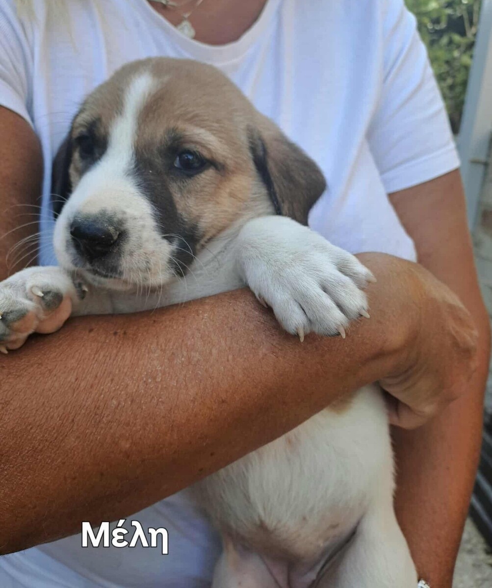 Η Μέλη γεννήθηκε από αδέσποτη μανούλα στο Μαρκόπουλο Μεσογαίας μαζί με άλλα 7 κουταβάκια. Πολύ κοινωνικά μεγαλώνουν ,με τη μαμά τους , ένα γλυκύτατο πλάσμα κι εκείνη. Είναι 2 μηνών, αποπαρασιτώθηκε και έχει εμβολιαστεί . Θα φτάσει τα 25 κιλά μεγαλώνοντας. Για πληροφορίες καλέστε 6981727360 και 6972056018