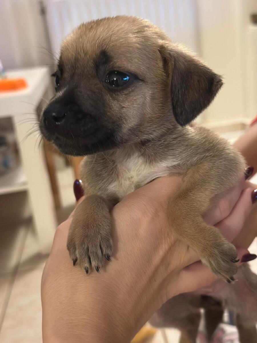 Η Μπάρμπι βρέθηκε σε μια κούτα μέσα στην καταρρακτώδη βροχή να τρέμει από το κρύο μαζί με τα αδελφάκια της αγκαλιά για να μη κρυώσουν. Είναι 2,5 μηνών και θα φτάσει τα 15 κιλά μεγαλώνοντας . Έχει αποπαρασιτωθεί και έχει κάνει τα πρώτα της εμβόλια.