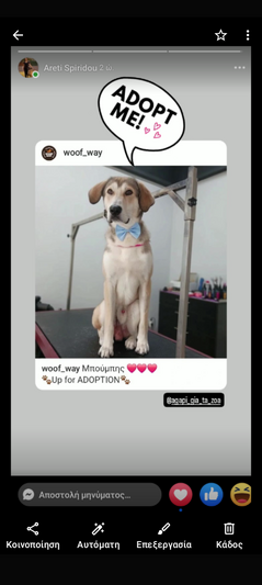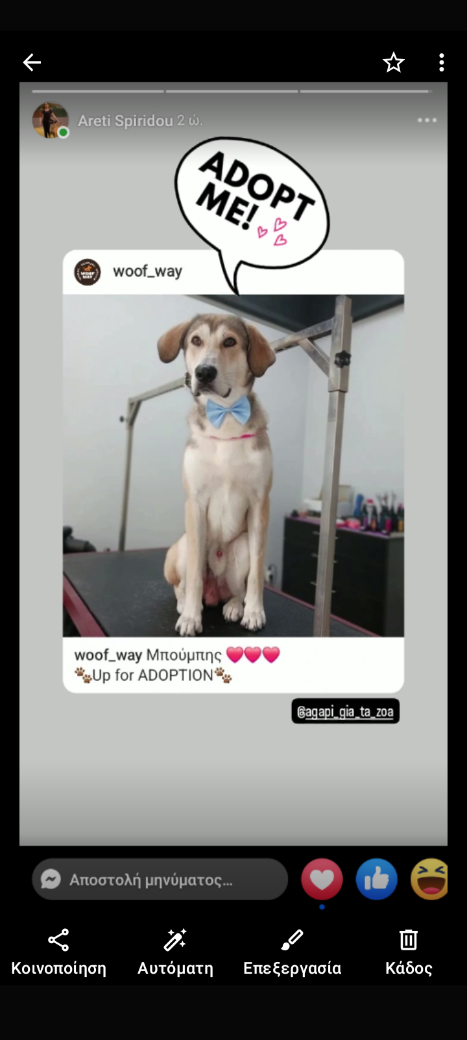 Φιλικός ,ανθρωποκεντρικός γενικά τα πάει καλά με άλλα σκυλιά ,βρέθηκε 3-4 μηνών αδεσποτακι και φιλοξενήθηκε σε σπίτι και για μεγάλο διάστημα σε πανσιόν -εκπαιδευση μέχρι και τώρα (με προσωπικά έξοδα ) ,ψάχνει το παντοτινό του σπίτι .στειρωμένος ,αρσενικό μεσαίου μεγέθους με όλα του τα εμβόλια ,θα δοθεί με ότι ορίζει ο νόμος και βρίσκεται στα Γιαννιτσά με τσιπ στο δήμο Πέλλας .