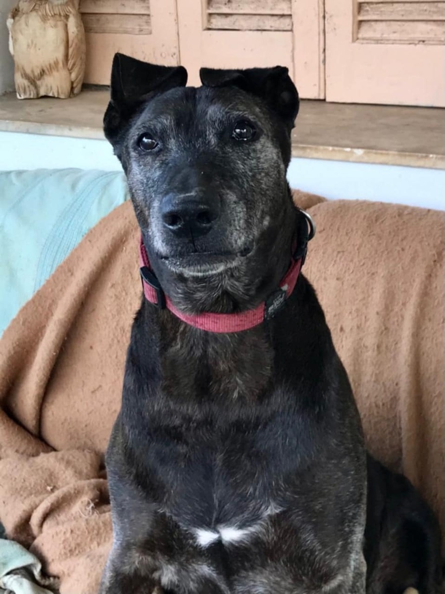He is looking for a quiet home to spend his last years with love and safety.He was taught to stay outside, but now he is also learning to stay inside and he is happy.