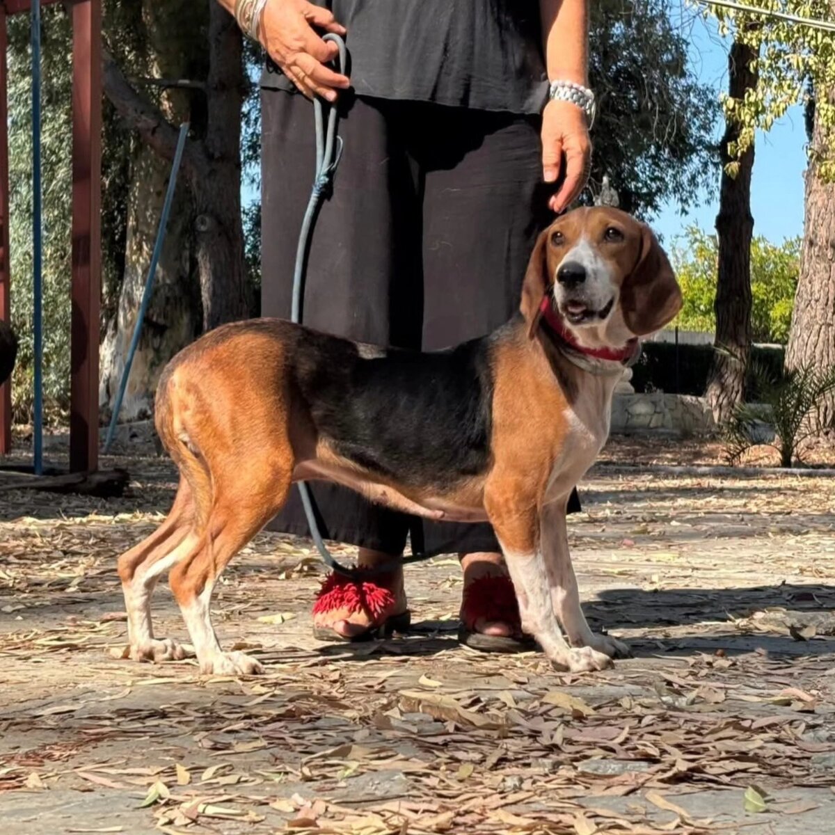 Enola is only 3 years old, a sweet Beagle mix weighing about 15 kg.