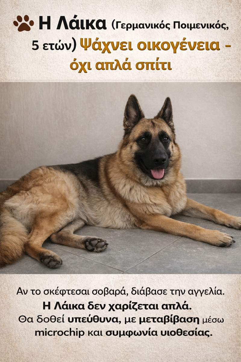 🐾 Η Λάικα ψάχνει το επόμενο της σπίτι (και την οικογένειά της)