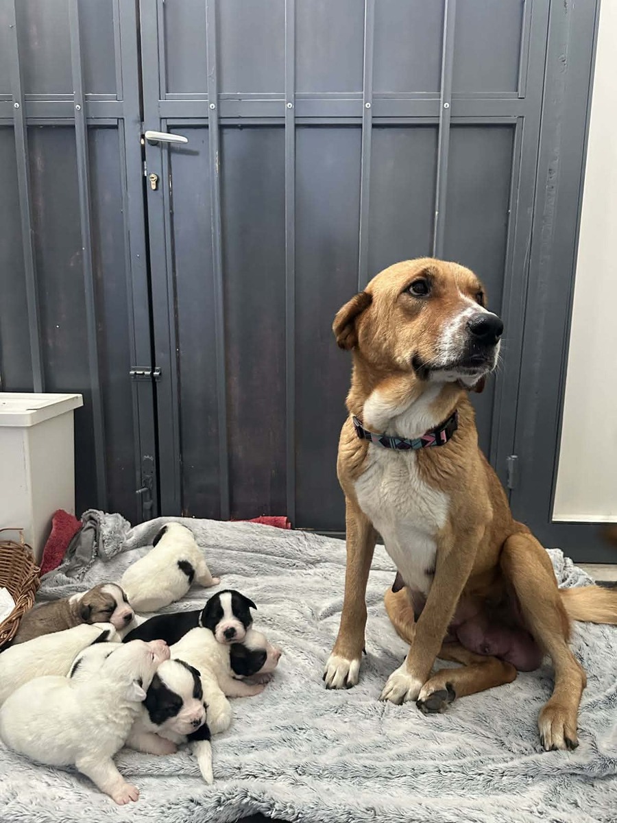 Τα μωρά είναι 30ημερων 2 αρσενικά κ 5 θηλυκά. Η μαμά θα στειρωθει μόλις δωθουν τα κουτάβια κ ψάχνει οικογένεια.