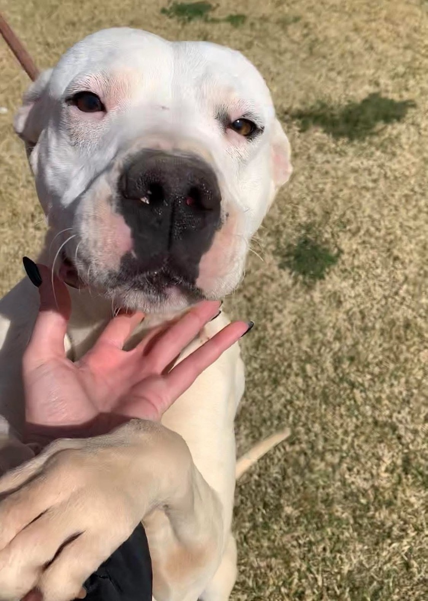 Είναι χαδιάρα, πολύ καλή με ανθρώπους και αρσενικά σκυλιά. Χρειάζεται βασική εκπαίδευση για τη βόλτα της. Έχει καλαζαρ για το οποίο κάνει θεραπεία.