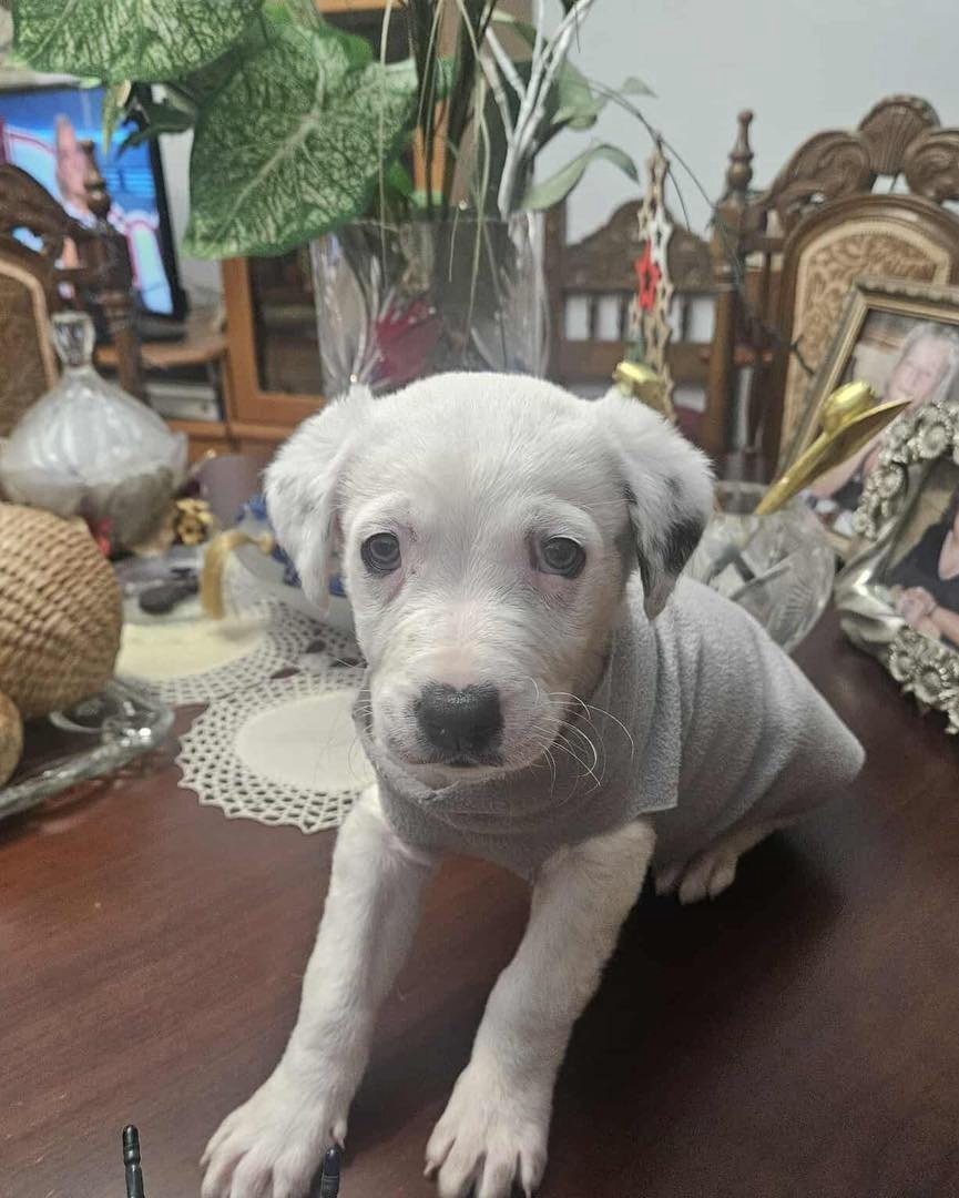 Ένα κουκλί που μοιάζει να έχει χαρακτηριστικά ενός DOGGO ARGENTINO πάντα ημίαιμο